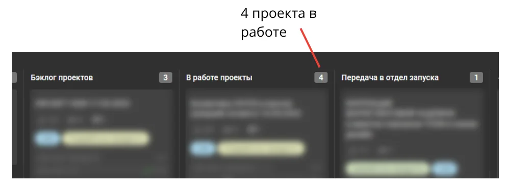 На Канбан-доске видно количество проектов, над которыми ведется работа одновременно