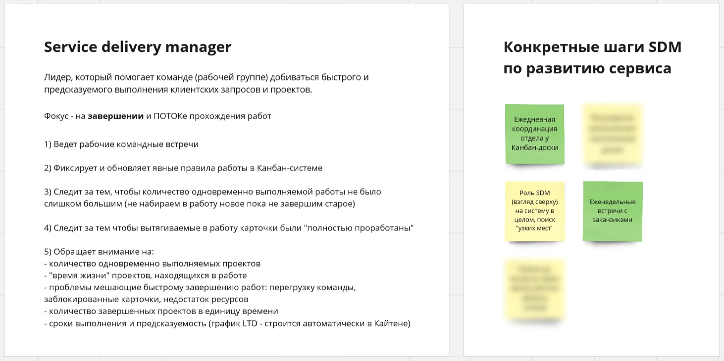 Один из участников сервиса проявил желание попробовать себя в роли "Менеджера потока" (Service delivery manager, SDM) — координировать работу "от начала до конца" и управлять потоком:
